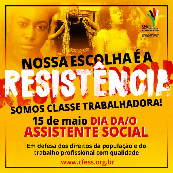 É com esse mote, “Nossa escolha é a resistência: somos classe trabalhadora!”, que o Conjunto CFESS-CRESS convida a categoria de assistentes sociais a celebrar o próximo 15 de maio, Dia do/a Assistente Social.